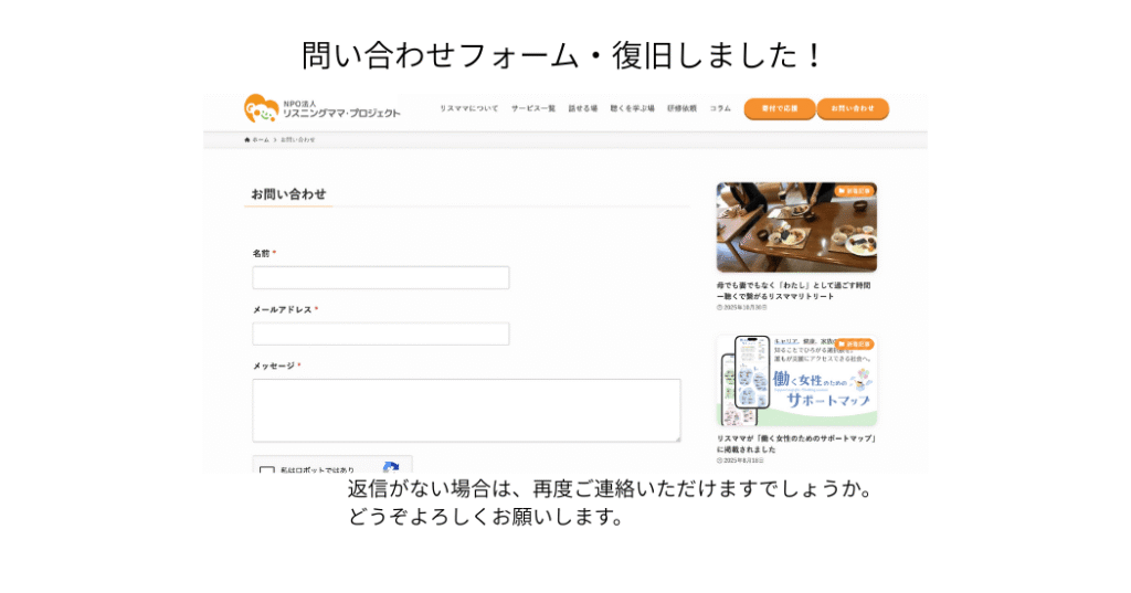 私たちNPO法人リスニングママ・プロジェクトは、【「聴く力」「話せる場」をすべてのママへ】というスローガンのもとに、共感とエンパワメントの文化を醸成し、誰もが安心してどんな気持ちも話せる社会を目指しています。